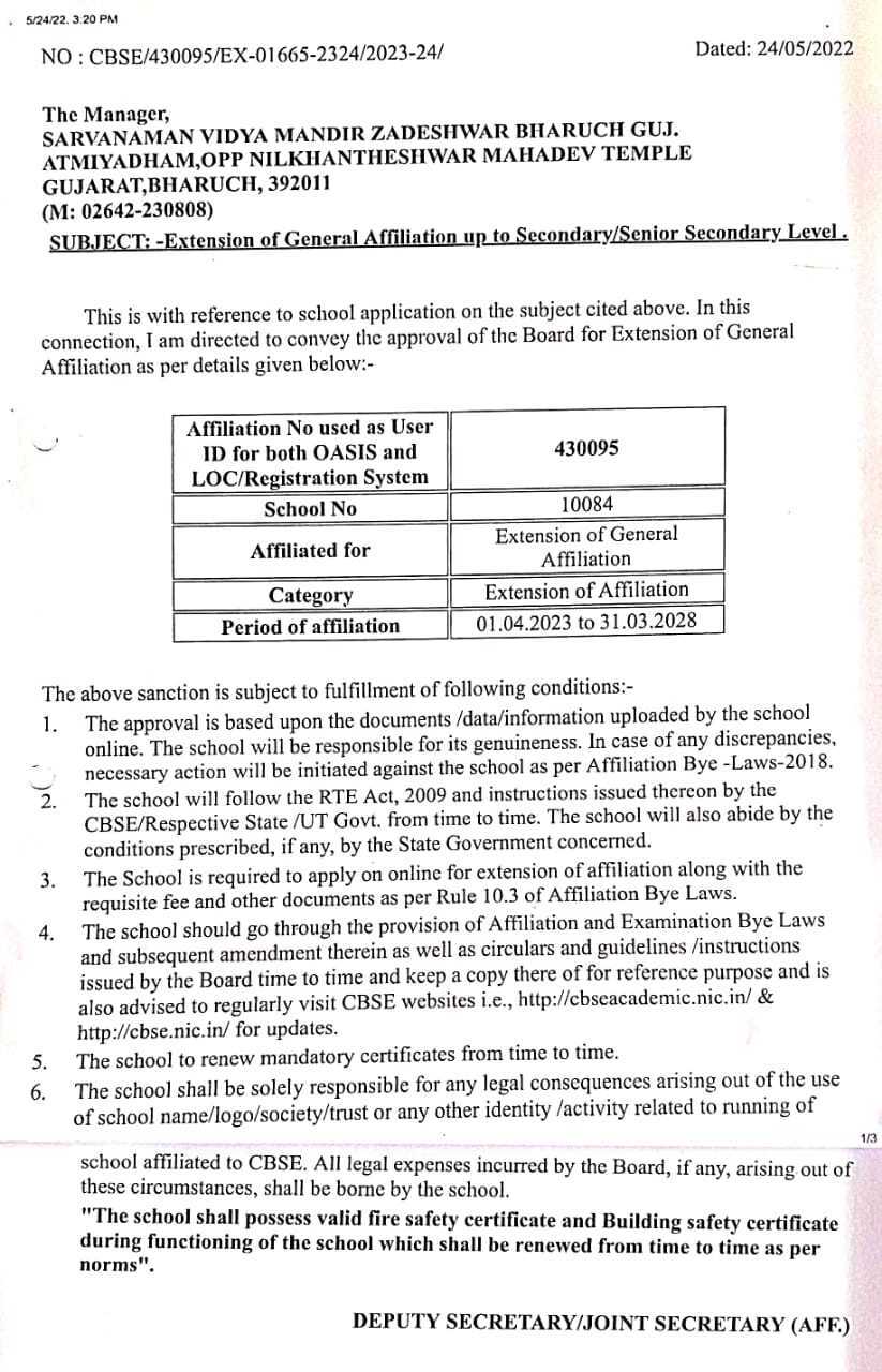 | COPY OF THE DEO CERTIFICATE SUBMITTED BY THE SCHOOL FOR AFFILIAION/UPGRADATION/EXTENSION/OF AFFILIATIONOR SELF CERTIFICATION BY SCHOOL | View |